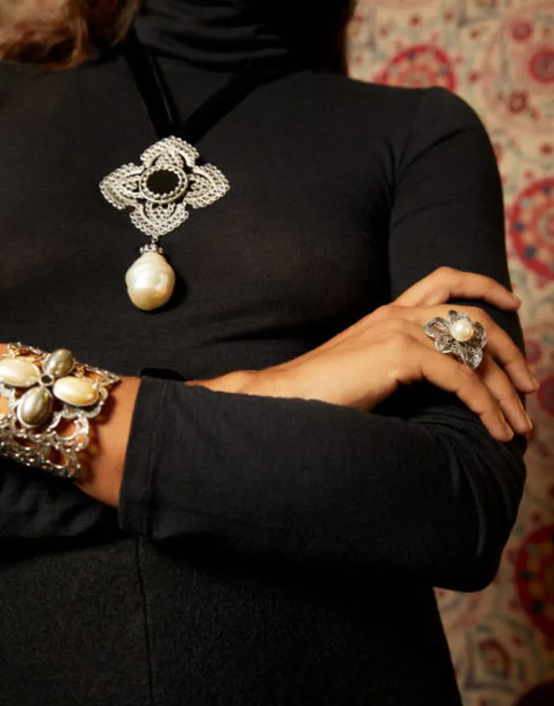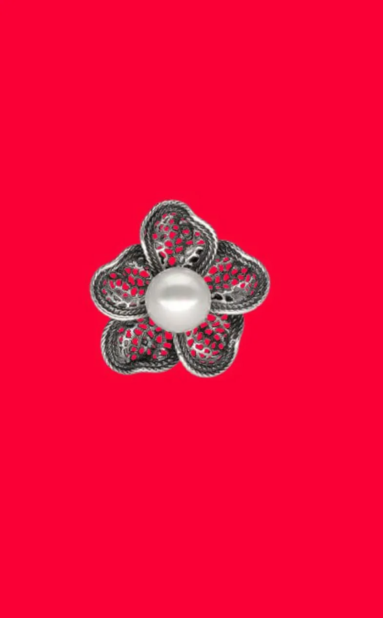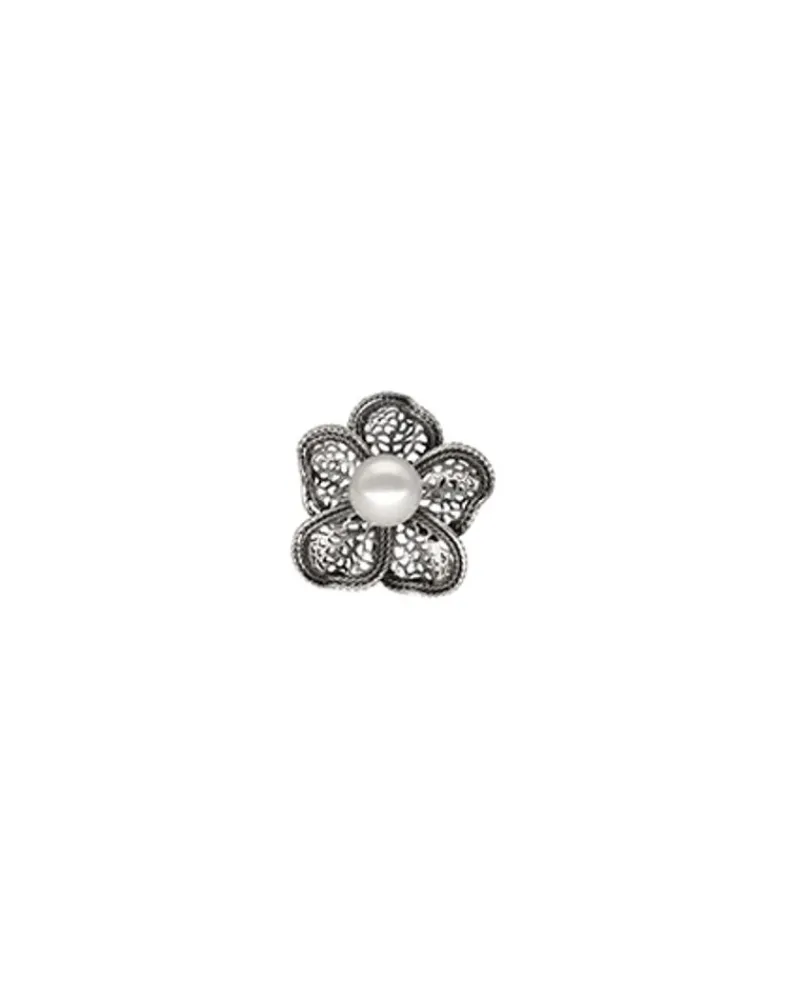 La Plata En Filigrana Envejecida Es La Responsable De Dar Forma A Las Curvas Son Armoniosas Y Suaves Características De Los Pétalos De Las Flores. Una Perla Redonda Blanca Pone Luz Al Centro De Una Pieza Lista Para Ofrecer El Sello Distintivo A Tus Manos.
