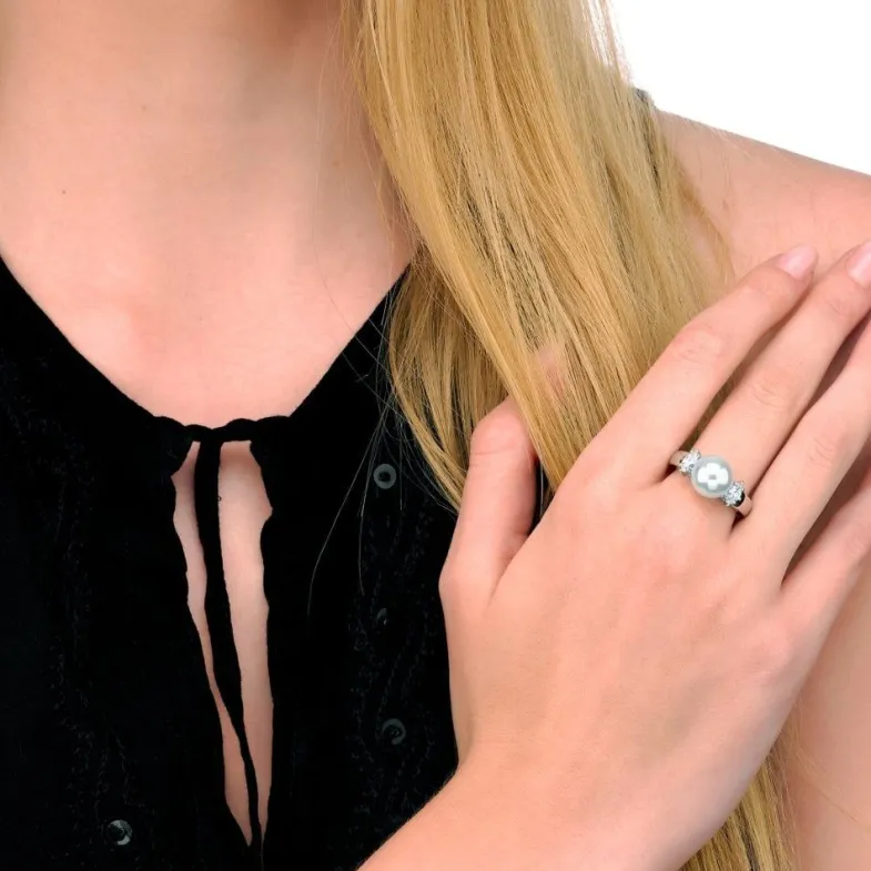 Majorica Anillo Nuada Plata Con Perla Gris 7Mm| Anillo Solitario