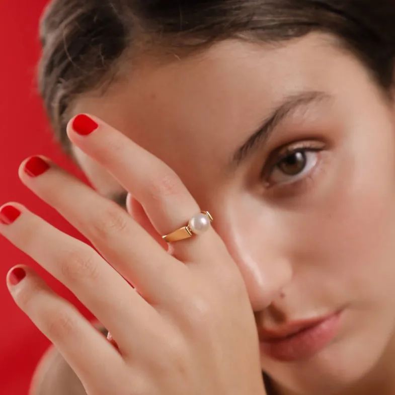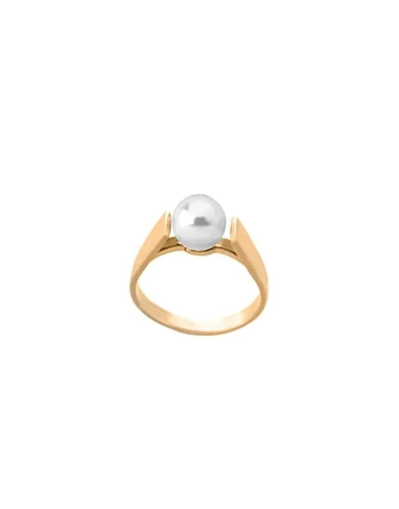 Majorica Anillo Nuada Dorado Con Perla Blanca 7Mm| Anillo Solitario