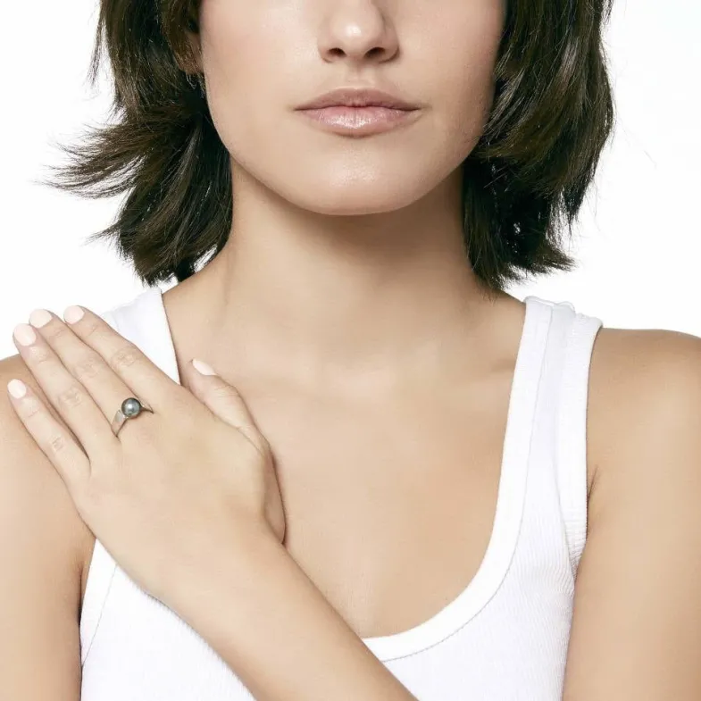 Majorica Anillo Nuada Plata Con Perla Gris 7Mm| Anillo Solitario