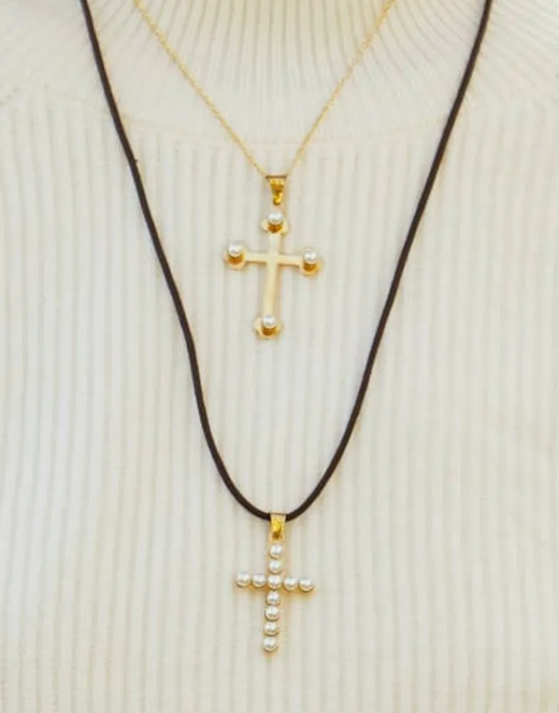 Majorica Colgante Cruz De Trinidad Dorada Con Perlas| Colgante Cadena