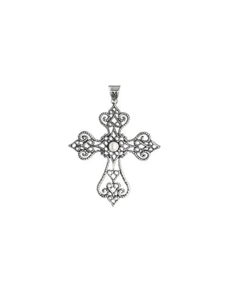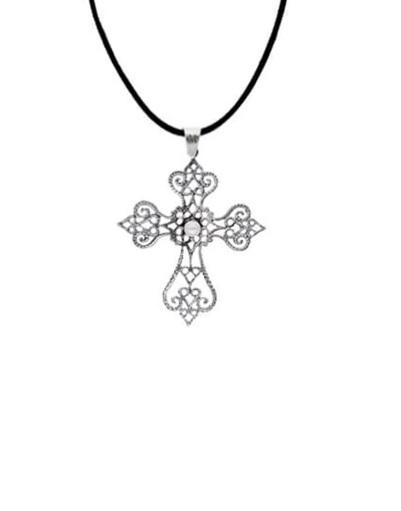 Majorica Colgante Tudor Peregrina Con Perla Sobre Cruz| Colgante Cadena