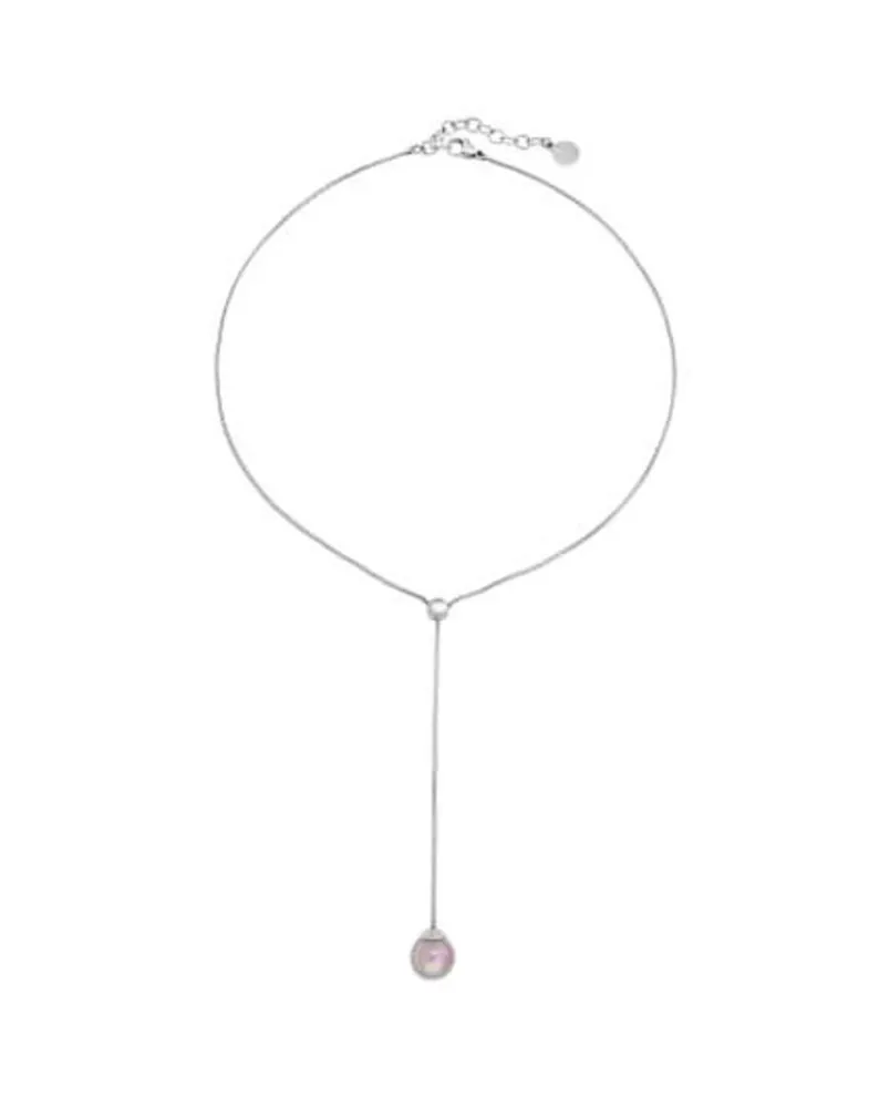 Majorica Collar Aura Ajustable De Acero Perla Nuage| Cadenas Con Perlas