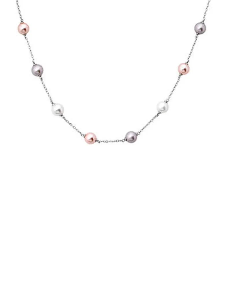 Majorica Collar Corto Ilusion Perlas Blancas, Nuage Y Pink 8Mm| Cadenas Con Perlas