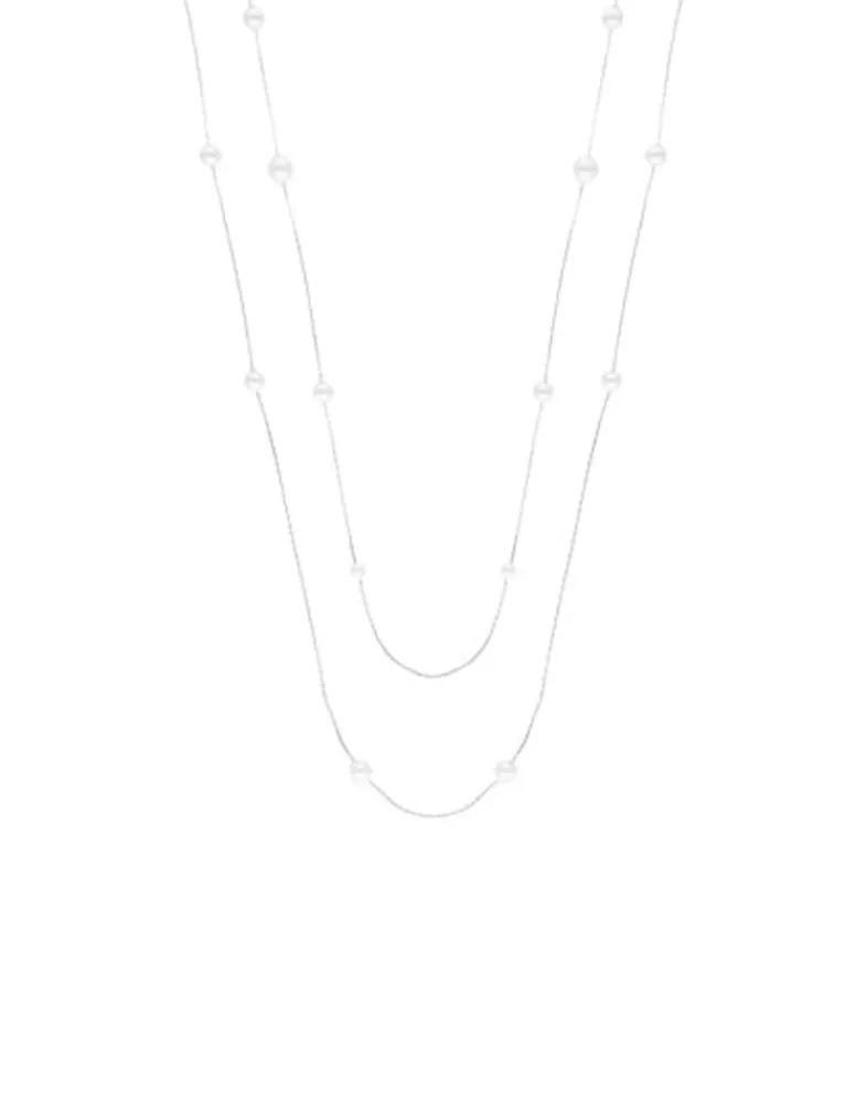Con Una Longitud De 160 Cm, Nuestro Collar Largo En Plata Diseñado En El Marco De Nuestra Colección Para Eventos Y Bodas, Nace De La Unión De Fina Cadena De Plata Y Perlas Redondas Blancas De 4, 5, 6, 7 Y 8 Mm.