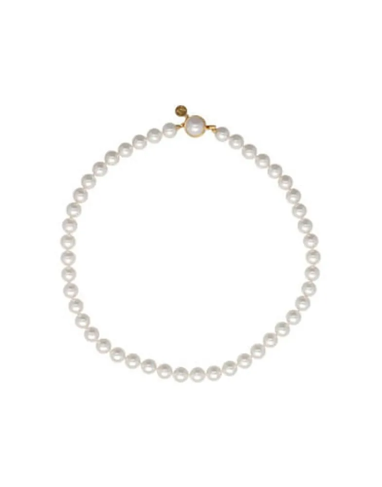 Majorica Collar Lyra Plata Dorada 8Mm 40Cm Cierre Lengueta| Collares De Perlas Largos