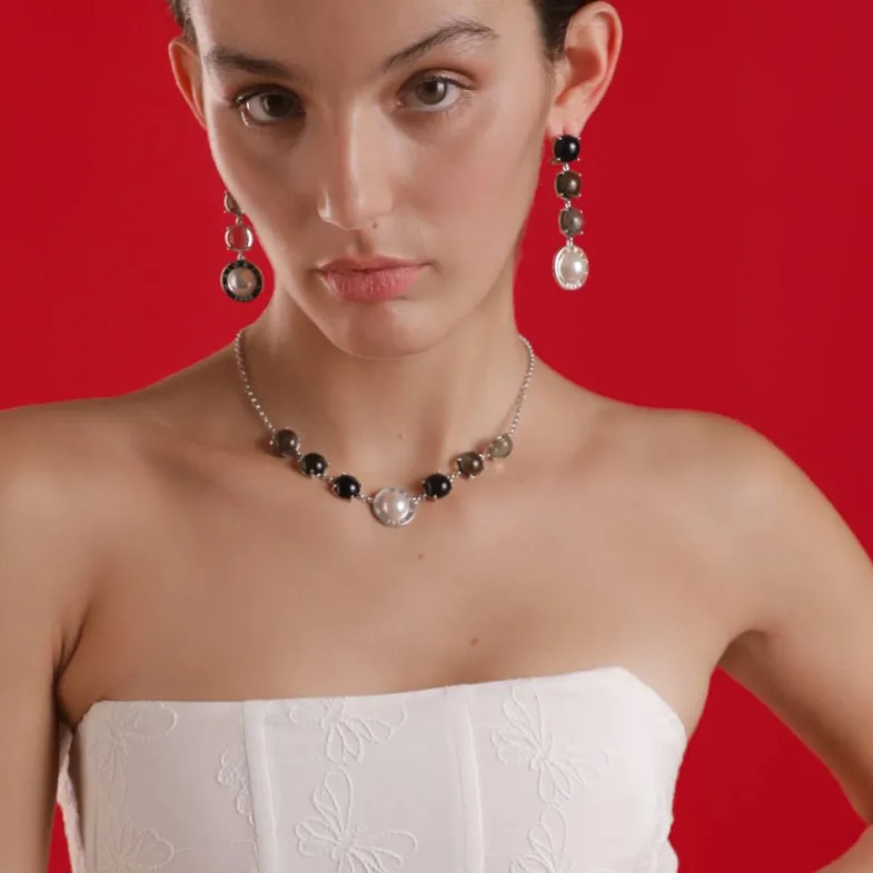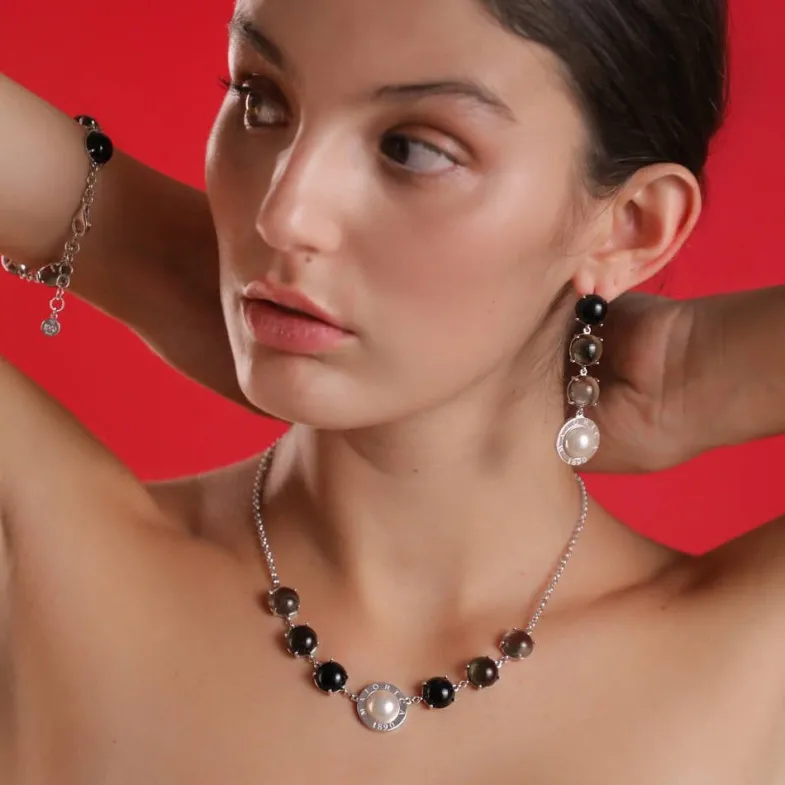 Los Pendientes Perfectos Para Aquellas Que Aman Enmarcar Su Rostro. La Mezcla Entre La Perla Orgánica Y El Cristal De Murano En Tonos Negro Y Gris Contagiarán De Sofisticación Tu Rostro Y Captarán La Atención De Todos Los Que Te Rodeen. ¡Una Auténtica Sensación!