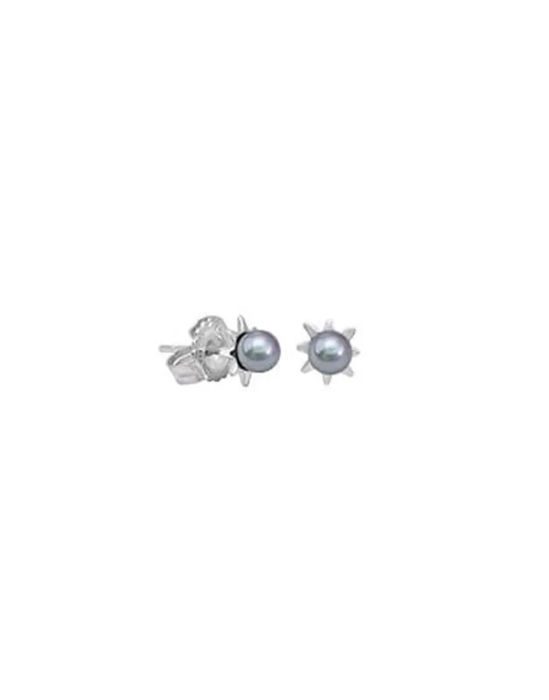 Versátiles Pendientes Icónicos Majorica Con Mini Perla De 4Mm En Color Gris, Y Detalle Flor En Plata Rodiada. Pueden Lucirse Juntos O Mezclarlos Con Pendientes Cies Circonita Y Darle Un Toque Más Atrevido A Tu Look.