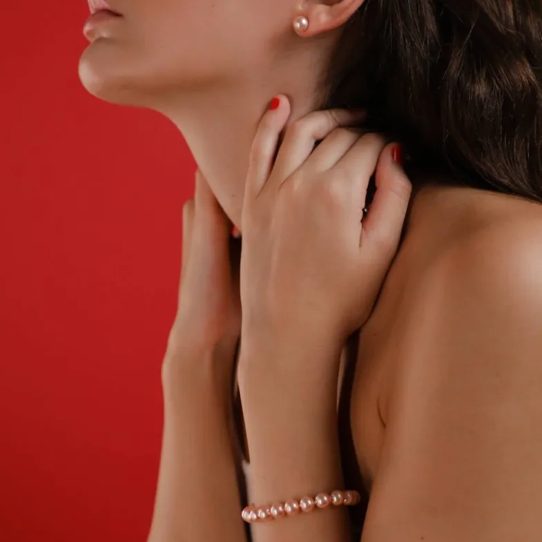 Majorica Pendientes Lyra Plata Con Perla Rosa 8Mm| Pendientes De Botón