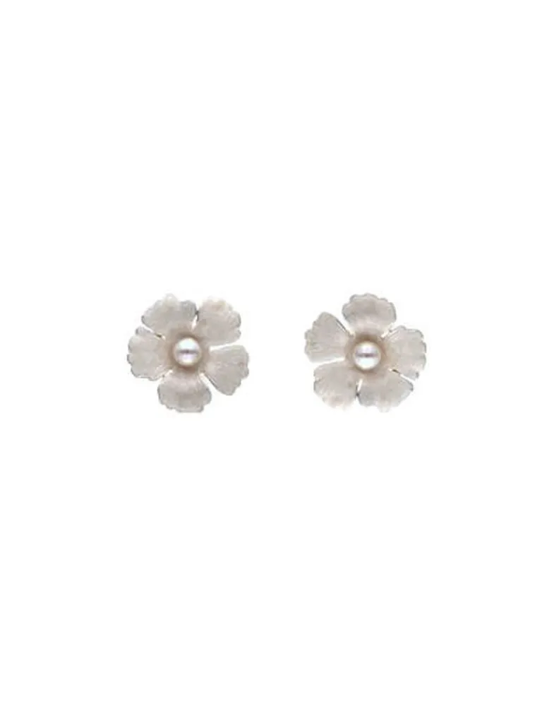 Majorica Pendientes Novia Santorini Bianco Flor Grande Nacarada Con Perlas| Pendientes Cortos