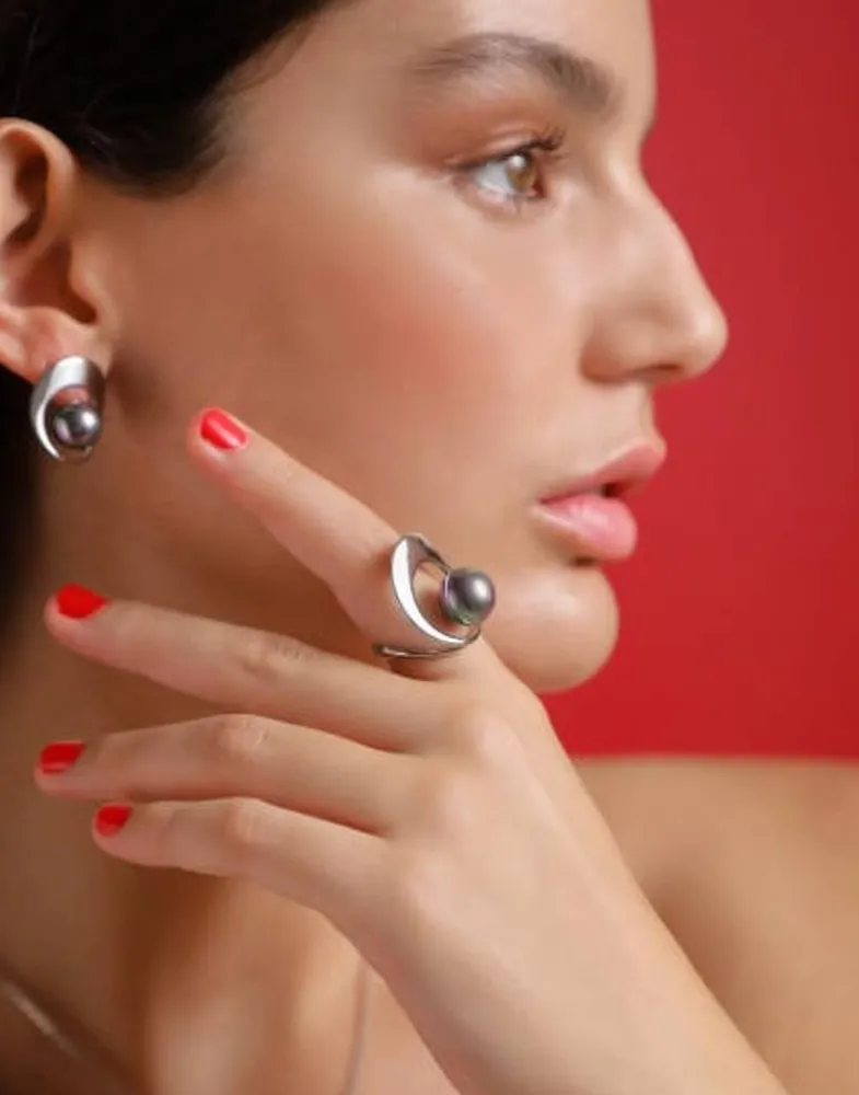Majorica Anillo Nuada Plata Con Perla Gris 7Mm| Anillo Solitario