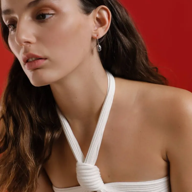 Majorica Pendientes Tender Plata Perla Barroca Gris 8Mm| Pendientes De Perlas Largos