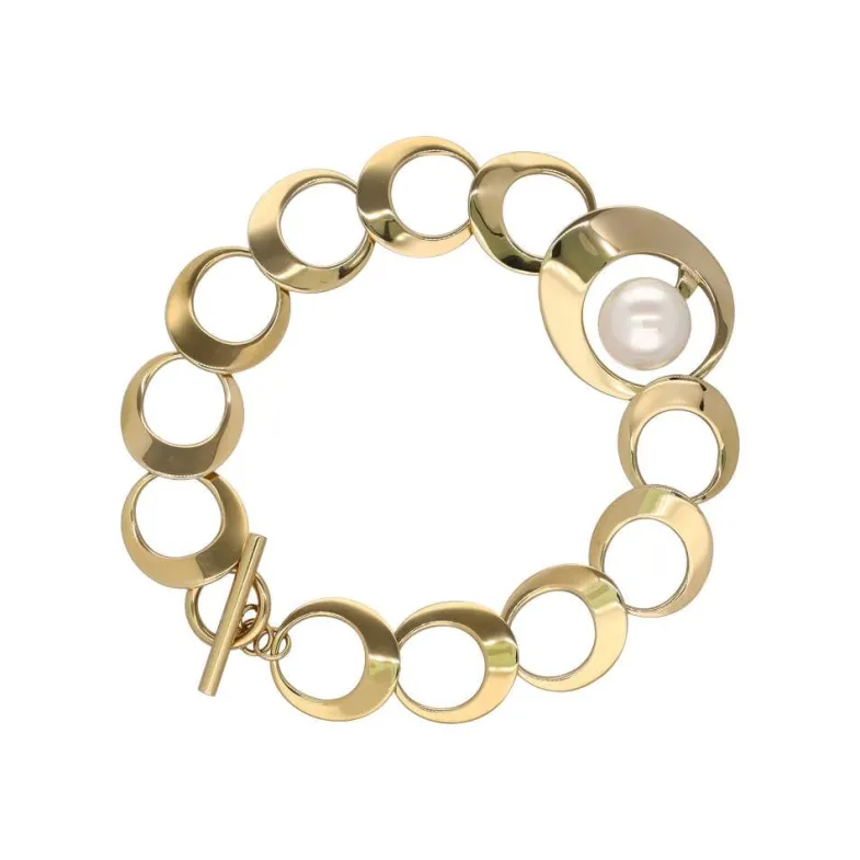 Majorica Pulsera Dorada Petra Encadenada Con Perla Blanca| Pulseras Encadenadas