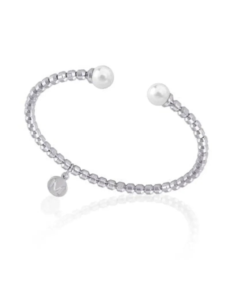 Majorica Pulsera Rigida De Acero Carmen Con Perlas Blancas| Brazaletes Rígidos