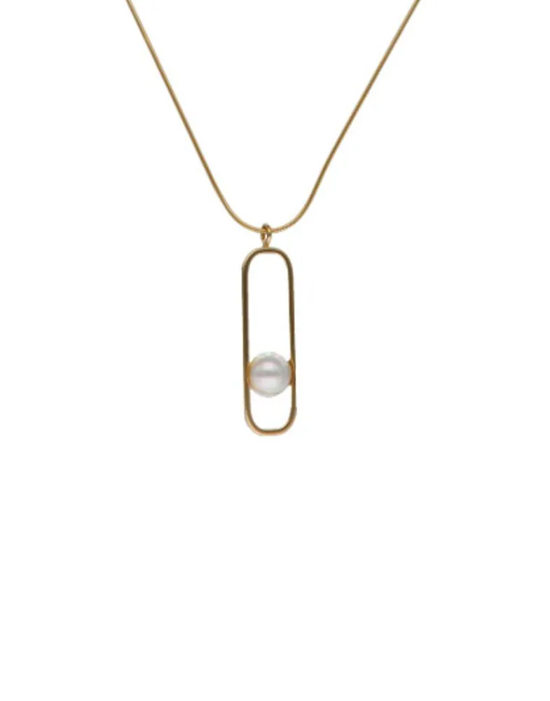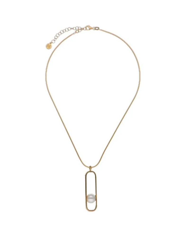 En Colgante De La Colección Atenea Cuenta Con Una Cadena En Plata Con Baño En Oro Sobre La Que Cuelga Una Estructura Ovalada Con Perla Blanca Redonda De 10Mm.