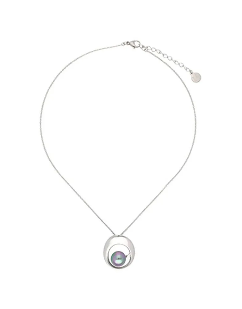 Majorica Colgante Con Perla Gris Petra En Acero| Colgantes Con Cadena