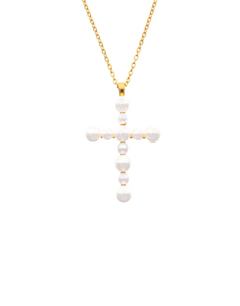 Majorica Colgante Cruz Dorado Con Perla Blanca| Colgante Cadena