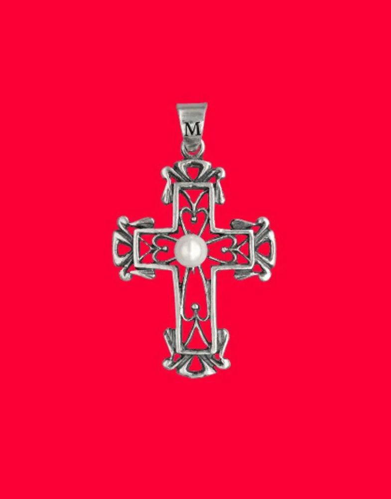 Majorica Colgante Cruz Medieval En Plata Con Perla Redonda| Colgante Cadena