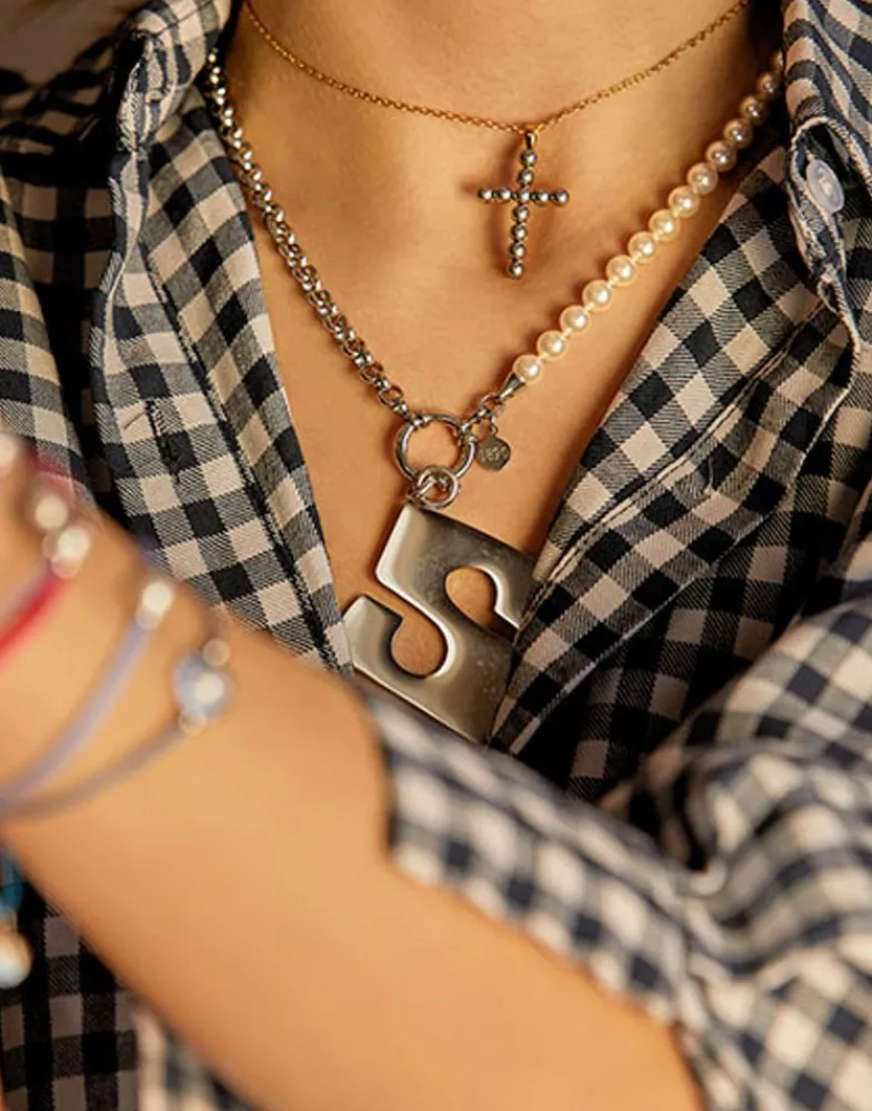 El Colgante De Inicial Letra Forma Parte De La Colección Cápsula Ibiza, Que Combina Lo Mejor De Nuestras Joyas Icónicas, Con Iniciales Intercambiables Y Un Tipo De Letra Único Inspirado En Los Años 70. Las Iniciales Pueden Combinarse Con Una Cadena Mitad Perla Y Cadena, O Con Un Collar De Cuero De Nuestra Colección De Básicos Para Crear Múltiples Looks.