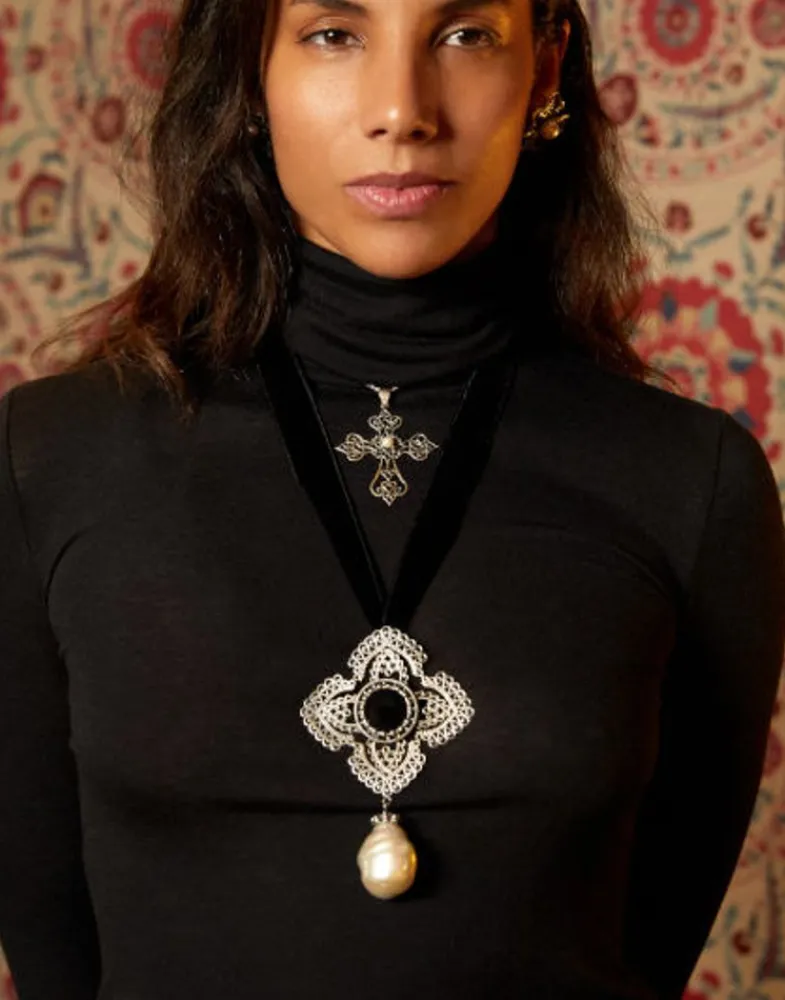 Majorica Colgante Tudor Peregrina Con Perla Sobre Cruz| Colgante Cadena