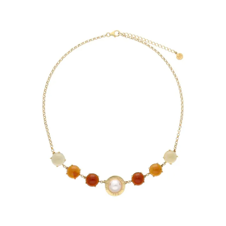 Majorica Collar Algaida Dorado Perla Media Bola Y Cristal De Murano Ambar| Cadenas Con Perlas