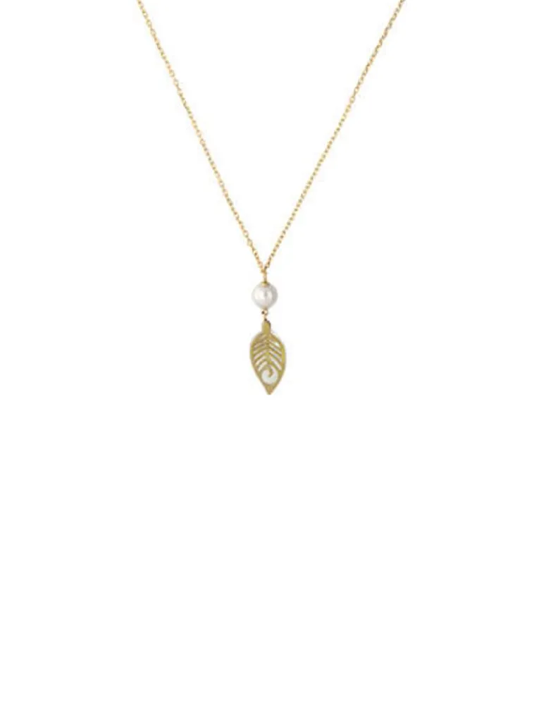 Para Las Amantes De Los Collares Largos, Esta Pieza De La Colección Dafne Está Cargada De Movimiento Gracias A La Culminación De La Fina Cadena Con Un Colgante En Madreperla En Forma De Hoja De Laurel. ¡No Pasa Desapercibido Allá Donde Va!