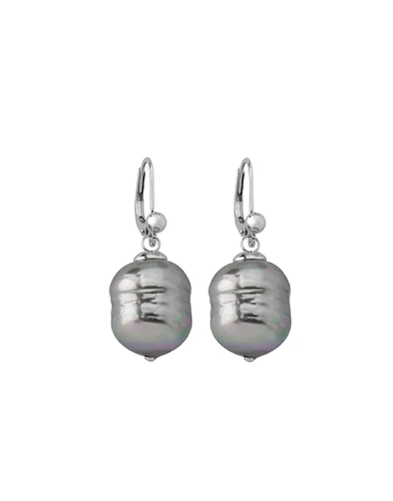 Majorica Pendientes Agora Plata Con Perla Barroca Gris 12Mm| Pendientes De Perlas Largos