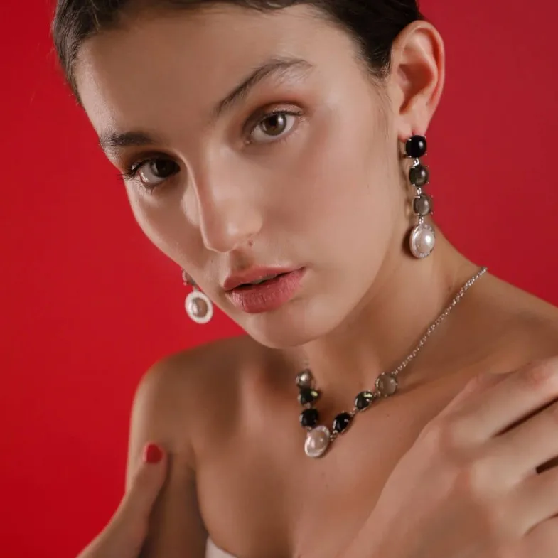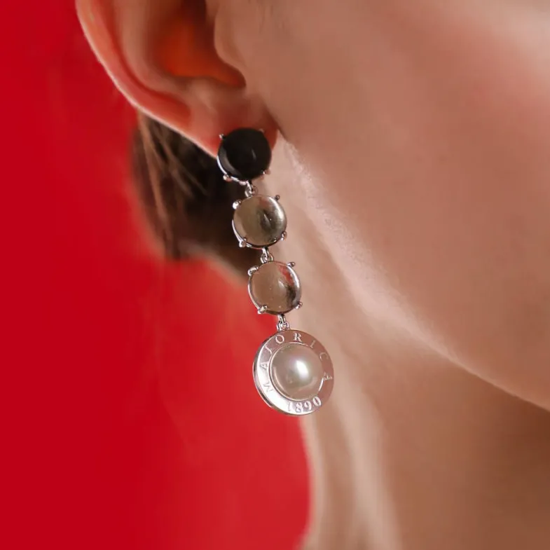 Los Pendientes Perfectos Para Aquellas Que Aman Enmarcar Su Rostro. La Mezcla Entre La Perla Orgánica Y El Cristal De Murano En Tonos Negro Y Gris Contagiarán De Sofisticación Tu Rostro Y Captarán La Atención De Todos Los Que Te Rodeen. ¡Una Auténtica Sensación!