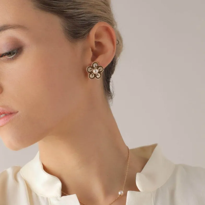 Majorica Pendientes Botón Roxana Madreperla| Pendientes Cortos