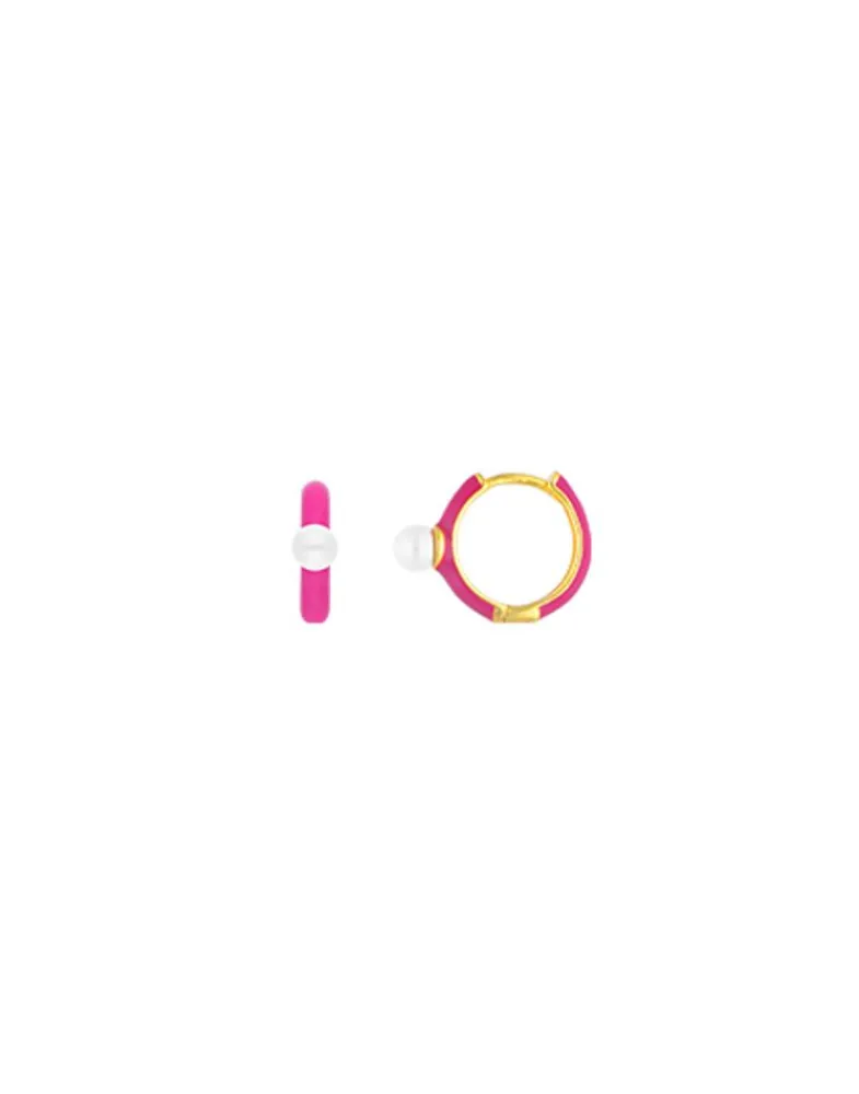 Imagínate Ya Luciendo Unos Divertidos Aros Mini Que Destellan En Tonos Azules, Turquesa, Naranja O Magenta, Como Si Llevaras Tu Propia Fiesta De Neón En Las Orejas. Además, La Perla Redonda Blanca De 4 Mm Le Añade Un Toque De Elegancia A Este Festival De Colores, ¿No Crees?