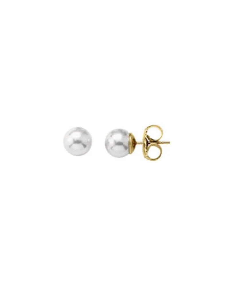 Majorica Pendientes Lyra Dorados Con Perla Blanca 10Mm| Pendientes De Botón