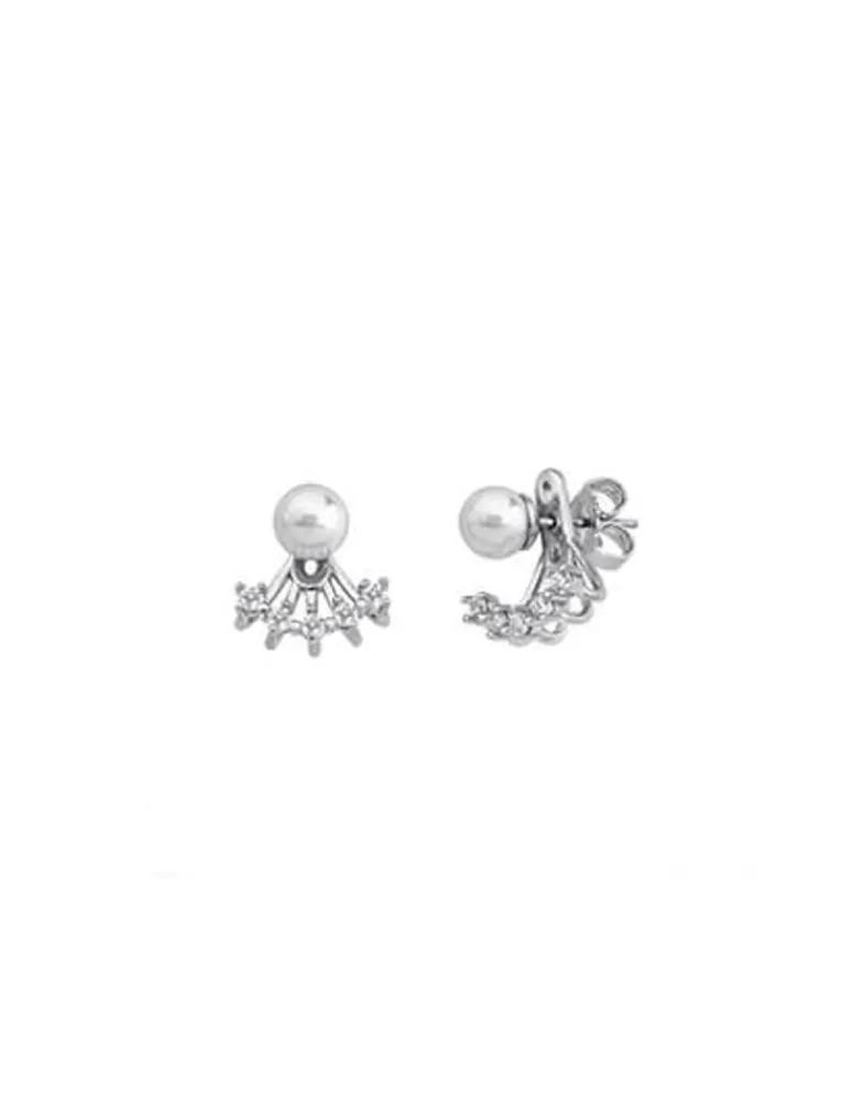 Majorica Pendientes Mood Plata Con Perla Blanca 6Mm Y Circonitas| Pendientes Cortos