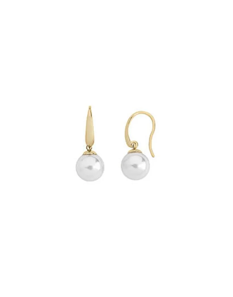 Majorica Pendientes Nuada Dorados Con Perla Blanca 10Mm| Pendientes De Perlas Largos