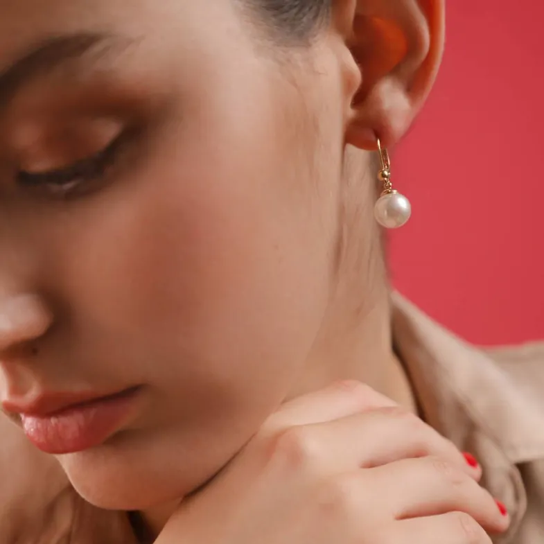 Majorica Pendientes Nuada Dorados Perla Blanca 10Mm Cierre Frances| Pendientes De Perlas Largos