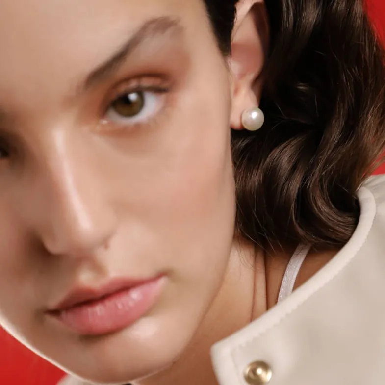Majorica Pendientes Nuada Plata Perla Blanca 10Mm Redonda Aplastada| Pendientes Cortos