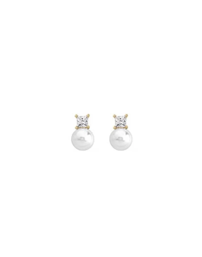 Majorica Pendientes Selene Dorados Con Perla Blanca 8Mm Y Circonitas| Pendientes Tú & Yo