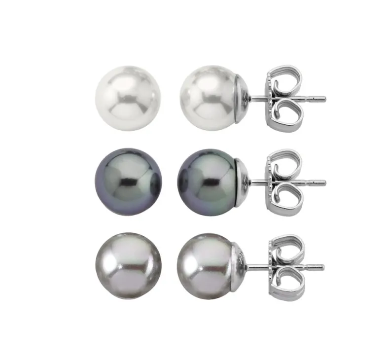 Majorica Set De Pendientes De Perlas Lyra 8 Mm Blanco, Gris, Nuage| Pendientes De Botón